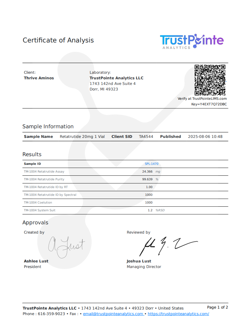 All products from Thrive Aminos are for research purposes only. Not intended for personal use.